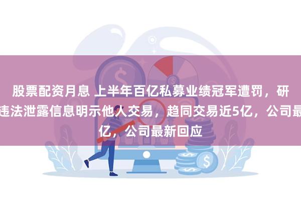 股票配资月息 上半年百亿私募业绩冠军遭罚,研究总监违法泄露信息明示他人交易,趋同交易近5亿,公司最新回应